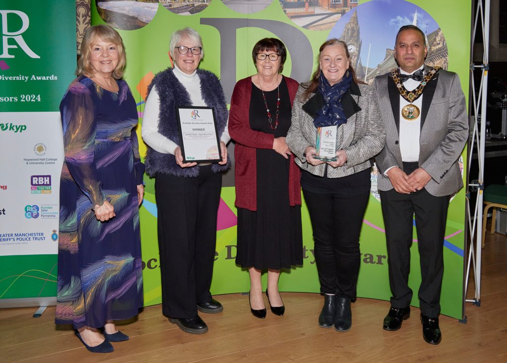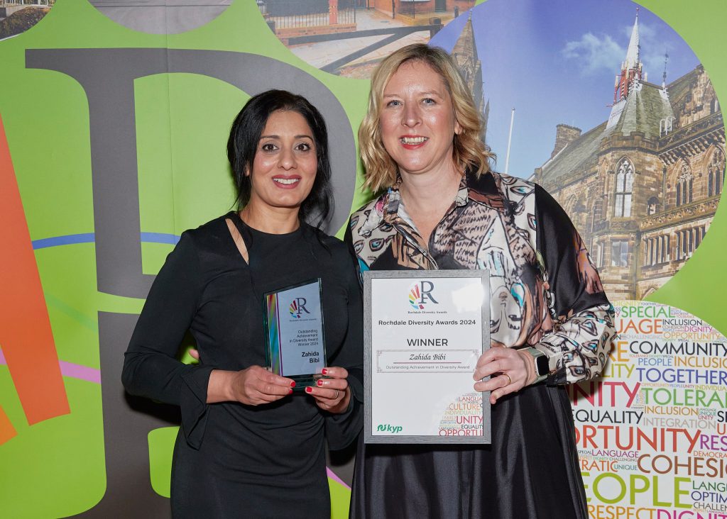 Hosted annually by KYP Since 2012, the awards recognise the outstanding contributions of individuals, organisations and employers who promote the best practices in making the borough a more inclusive and cohesive place to live and work in. The event was sponsored by Rochdale Borough Council, Rochdale Boroughwide Housing, Hopwood Hall College, Your Trust, Rochdale Training, Rochdale Safer Communities Partnership and The Greater Manchester High Sheriff’s Police Trust.